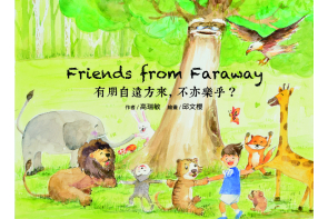 本文將「有朋自遠方來,不亦樂乎」翻譯成「hip, hip, hooray. hooray for friend. Friend from faraway.」;意思是對於從遠方來的朋友,表示歡迎與開心。所以在圖片中,可以看到孩童的善良與純真、沒有憂慮的笑容,與大自然的和諧,與人類、動物都能保持和平與溫暖。既然大家都是朋友,更應該保持開放的心胸。家長們帶領孩童閱讀時,可讓孩子們試著扮演小男孩A-Di,藉由簡單的對話,使孩子融入故事;對於「朋友」這個概念,也能有自己的體會。
