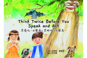本文將「眾惡之,必察焉;眾好之,必察焉」翻譯成「Think Twice Before You Speak and Act」,表達得更多的是「三思而行」。不僅在識人方面得謹慎查證,人們面對任何事情的態度、言行舉止也應當如此。繪本中可以看到孩子們原本對蝙蝠感到恐懼,而在面對流浪動物時,雖然出於善意,但處理的方式卻有不妥。經師長引導後,孩子們才發現原來蝙蝠並不可怕,而且還會吃害蟲。看到流浪動物時,直接餵食也可能因不慎而導致受傷。家長帶領孩子閱讀時,也可與孩子分享「三思而行」、「三人成虎」的故事,讓孩子知道:應謹慎思考、對待所有事情。