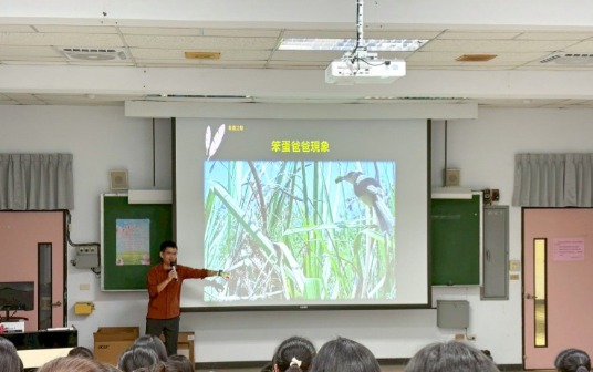屏科大野生動物保育研究所鄭舜仁研究員講述「草與網下聽見生命之歌」、「草叢裡的小精靈-淺談兩種鷦鶯的繁殖生態學」