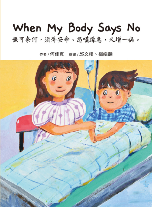 本文著重取用「病」的概念,將句子翻譯為「When My Boby Says No」,搭配簡單易懂的故事,告訴孩子應該好好照顧身體。每個人或多或少都有生病的經驗,家長與孩子共讀時,可以讓孩子回憶過去生病的感受,並嘗試與孩子進行角色扮演。透過繪本的對話,不僅可以讓孩子認識體內的各種器官,也可以提供孩子練習換位思考的機會。自己有沒有好好照顧身體?器官如果能表達想法,會不會喜歡自己呢?藉著閱讀本書的機會,家長還可以針對孩子生活上的壞習慣,引導孩子思考如何改正。