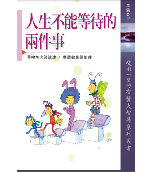 父慈子孝,為超越時空之自然法則;而「子欲養而親不待」,則為人生至大之苦痛與遺憾。《人生不能等待的兩件事》告訴我們:孝順與行善,上可慰祖先之心,下可免災殃於人倫。人生無常,行孝行善,不容等待,須即刻實踐,始得安心安世。